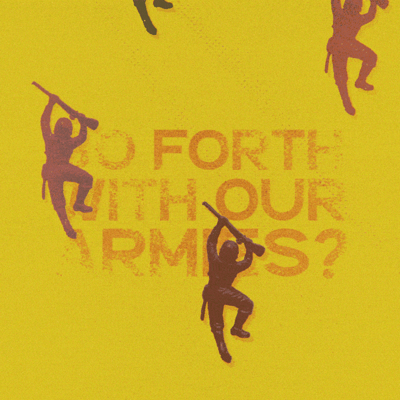 I took a very literal approach with this animation, and found an image of those plastic toy soldiers that I used to play with when I was a kid. I remember staging large scale battles with my brother between green and tan. Good times.