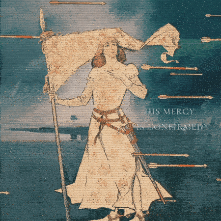 I found this vintage illustration of St. Joan of Arc and isolated it in Photoshop and separated the back flag from the head, since it was all originally one illustration. I then brought it into After Effects and rigged up the character in a new precomp using the puppet tool and Puppet Tools 3 to connect the pins to nulls to aid in animation. Next I created the slight movements of St. Joan and the waving of the flag.