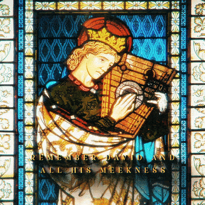 I found this great stained glass window of David playing a harp, and I thought his expression captured that meekness to which this verse alludes. His eyes are cast down which bespeaks his lack of confidence in himself, yet he hymns his praise to God, in which his confidence lies.