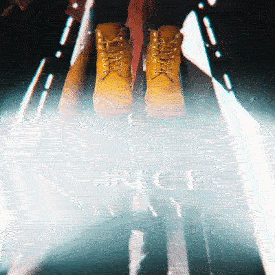 For this animation I basically found a pair of shoes standing facing forward and brought in a texture for the “ground” and adjusted it in 3D space to make it match the perspective of the feet. I then used a similar texture (or maybe the same one!) and applied Stretch to it and animated the movement to make it feel like an escalator or moving walkway. I added in some light flares that would hit as certain portions of the texture passed certain parts of the screen, which helps give it a bit more heft in terms of the perceived movement.