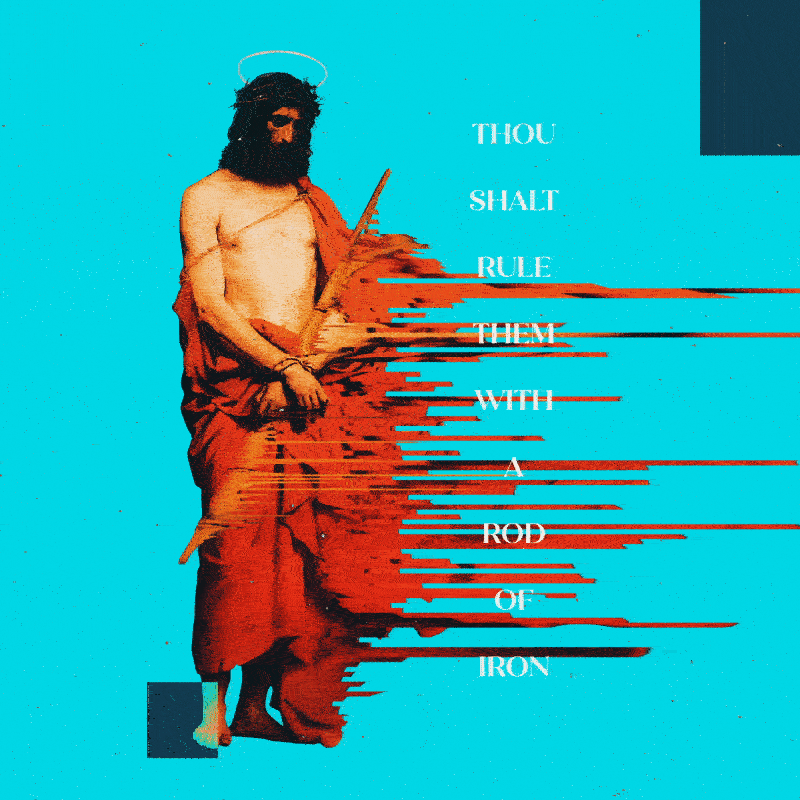 For this animation I wanted to create a juxtaposition between the imagery of the rod of iron and the means by which our Lord accomplished this; that is, not by earthly assertions of power by by his Passion and death on the cross.