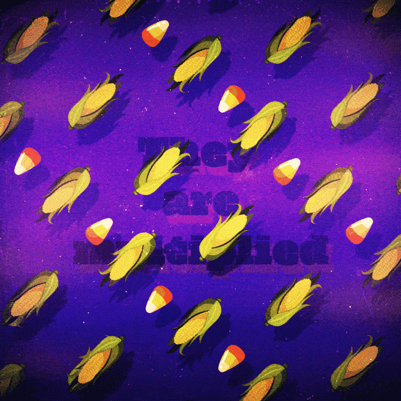 I used a couple images, one of corn and one of candy corn, because, hey, why not! The animation is pretty straightforward; I created precomps of each image with enough padding within the precomp to have the spacing I wanted, where the images wouldn’t overlap but still feel like they might. I then applied the Motion Tile effect to each and modified the Center Position parameter.
