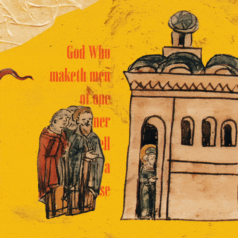 For this animation I found an interesting image in an old manuscript showing a procession into a church; I don’t precisely remember, but I believe the occasion was a kingly coronation. At any rate, I liked how it showed men of different stations processing to the same place, which I thought highlighted the passage well.
