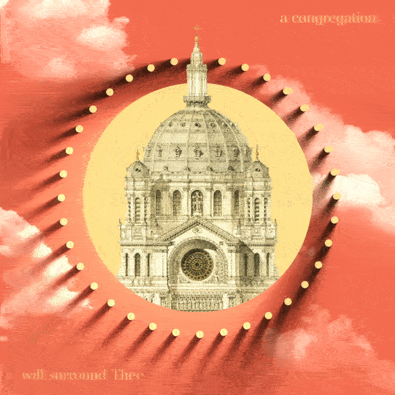 I found a nice antique architectural drawing of a church and thought it’d make a nice focus for this animation. I cut it out in Photoshop and brought it into After Effects, using a simple ellipse as a matte for it.