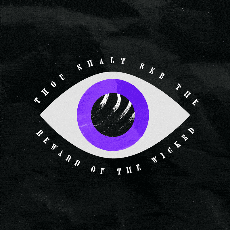 This animation is perhaps a bit more on the nose, so to speak, even though it uses a big eye. That’s a bad joke. Anyway, I was considering the line about seeing the reward of the wicked, and thought that this approach would work pretty well to have a reflection of destruction and fire in an eye.